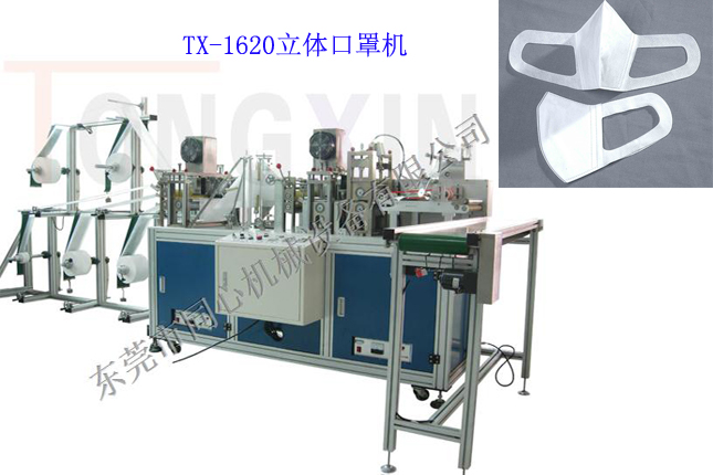 立体口罩机主要是制作立体形状的口罩,耳带采用弹性布作原料,戴上后感觉舒适没有压力! 主体采用优质铝合金材料,外观精美。面板采用硬化处理,PLC微电脑控制,自动张力控制系统,运行更加稳定。